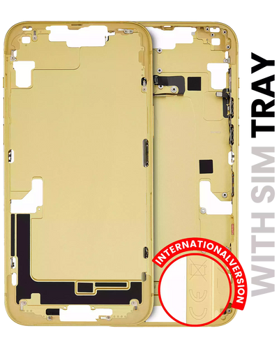 Mid-Frame Housing With Power And Volume Button Compatible For iPhone 14 Plus (International Version) (Used OEM Pull: Grade A) (Yellow)