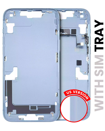 Mid-Frame Housing With Power And Volume Button Compatible For iPhone 14 Plus (International Version) (Used OEM Pull: Grade A) (Blue)